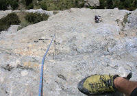 Topo de la via i l'atlètic inici del primer llarg, més difícil si cap perquè ens agafa encara freds i encongits per l'arrogància del paratge